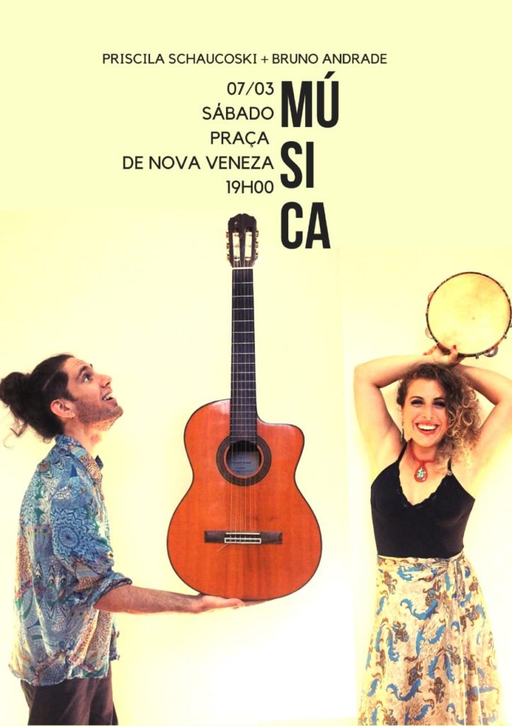 Ainda no sábado, quem se apresenta no coreto da Praça Humbeto Bortoluzzi, às 19h, é a dupla Priscila Schaucoski e Bruno Andrade.
