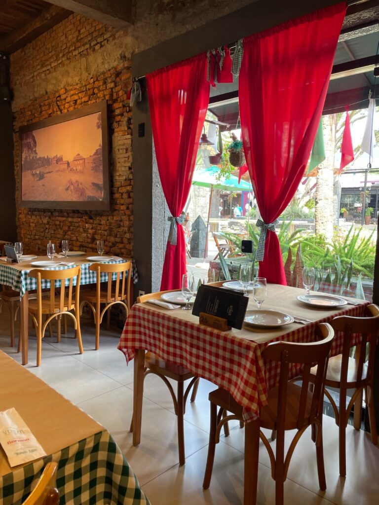 O Ristorante Veneza fica localizado na Praça Humberto Bortoluzzi, ao lado da Gôndola.
