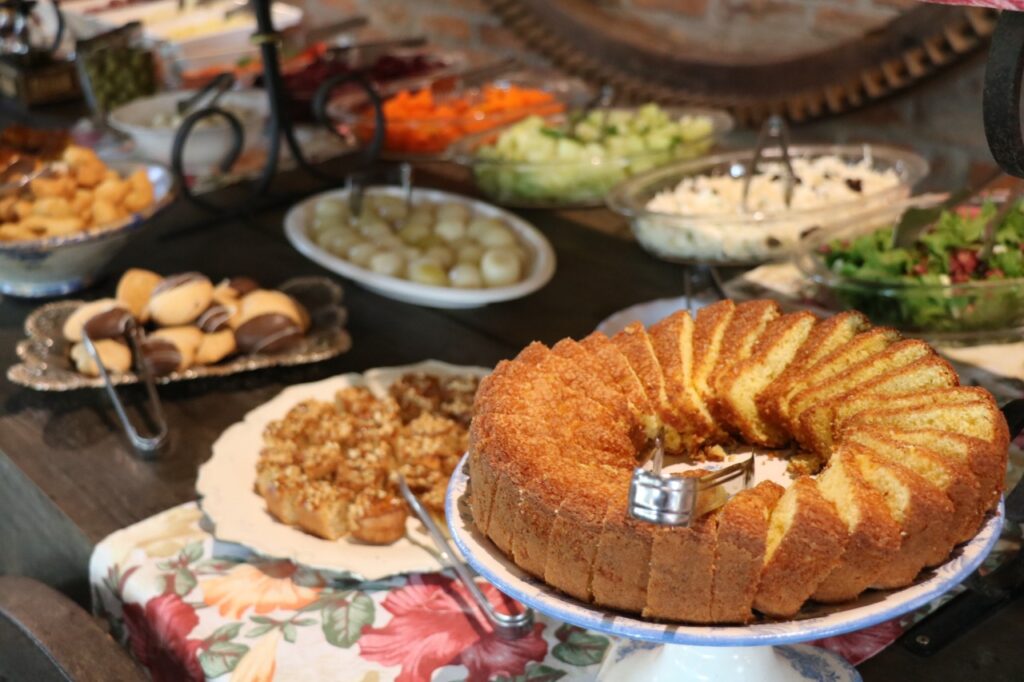 Já no café com mistura servido das 14h30 às 18h30, as delícias são os clássicos e tradicionais bolos caseiros, tortas, doces, salgados, frios, produtos coloniais e diversas receitas que são os acompanhamentos perfeito para aquele cafezinho.