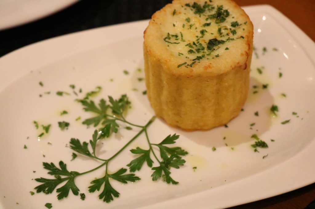 Entre as entradas está uma receita tradicional da gastronomia típica italiana, a polenta. Servida na versão “brustolada”, acompanhada de tomate ou salame, ou na versão de ninho de polenta recheada com queijos e a trifolati com cogumelos. Outras opções de entradas são salames e queijos com diversas variedades.