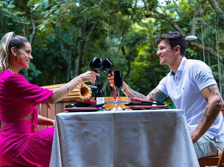 Para deixar a estadia ainda mais romântica a Pousada Sítio Raízes conta com uma banheira de ofurô de madeira cedro rosa com hidromassagem ao ar livre para curtir na companhia de quem você ama e de bons vinhos e bebidas. O pacote especial de Dia dos Namorados vai celebrar a data com um jantar intimista super romântico preparado pelos anfitriões de forma personalizada.