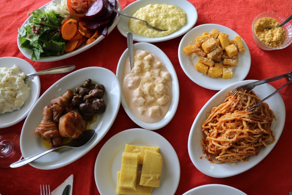 Na mesa é servido gastronomia típica italiana com massas caseiras como espaguete à bolonhesa, nhoque ao molho rosé, polenta, galinha ensopada, fortaia, e saladas. Outro destaque é um buffet de sobremesas.