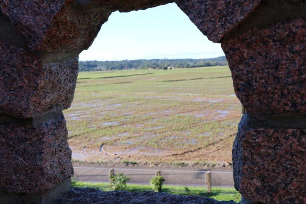 Construído de pedras o local abriga uma vinícola com fabricação e loja no andar de baixo e na parte superior um salão com lareira e uma escada em caracol que leva para a torre onde a vista se desdobra em plantações.