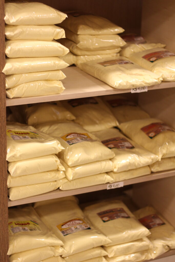 Procure sempre a melhor farinha, e na Coofanove você encontra quatro tipos especiais, Di Venezia, Gava, Marini e Valdati. Ferva a água, acrescente a farinha de milho, sal e mexa no fogo até cozinhar por cerca de 30 minutos. Depois, para acompanhar essa delícia da colônia, a cooperativa também conta com torresmos saborosos, queijos, salames e vinho.