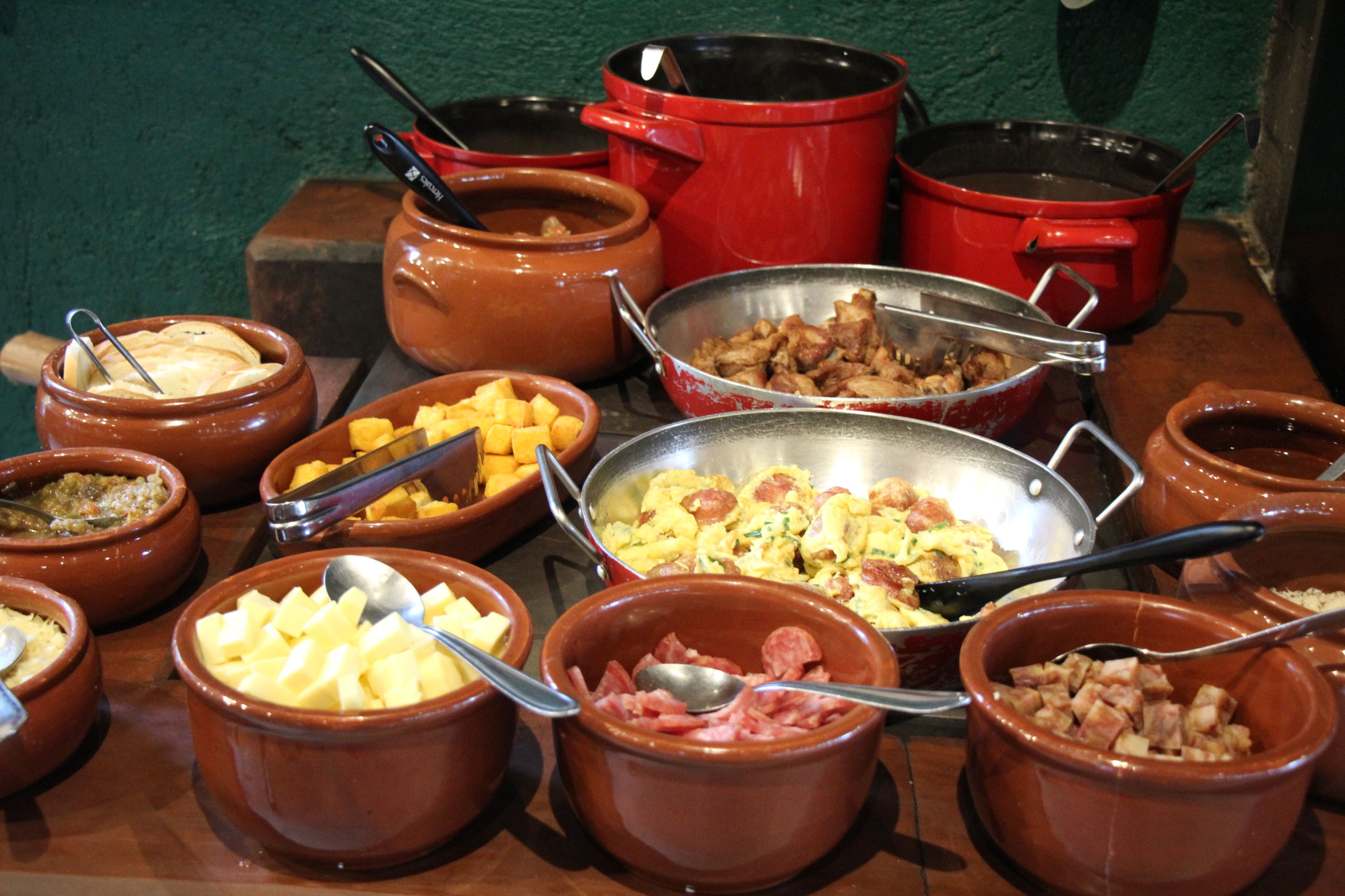 Outro detalhe é um fogão a lenha que possui um buffet com entradas e outros pratos feitos especialmente. Aquele arroz e feijão sempre quentinhos, salame com ovos, legumes salteados, lombo suíno, costela bovina, lasanha à bolonhesa, entro outras receitas que mudam diariamente. Para finalizar nada melhor que deliciosas sobremesas.
