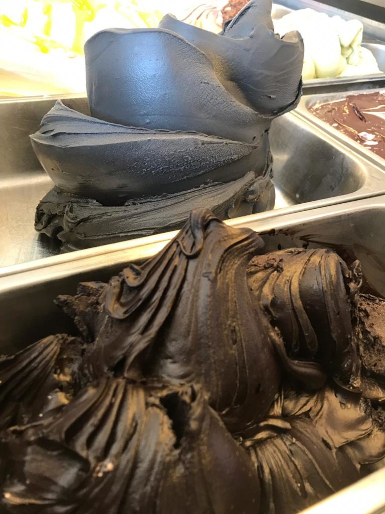 Se você ficou curioso com o gelato de cor preta, o sabor é o Vanilla Black, uma das novidades. A dica é pedir na versão casquinha e postar uma foto no Instagram. Outros gelatos que também são novos é o de Chocolate Ruby, tem cor rosa característica da semente do cacau desta espécie.