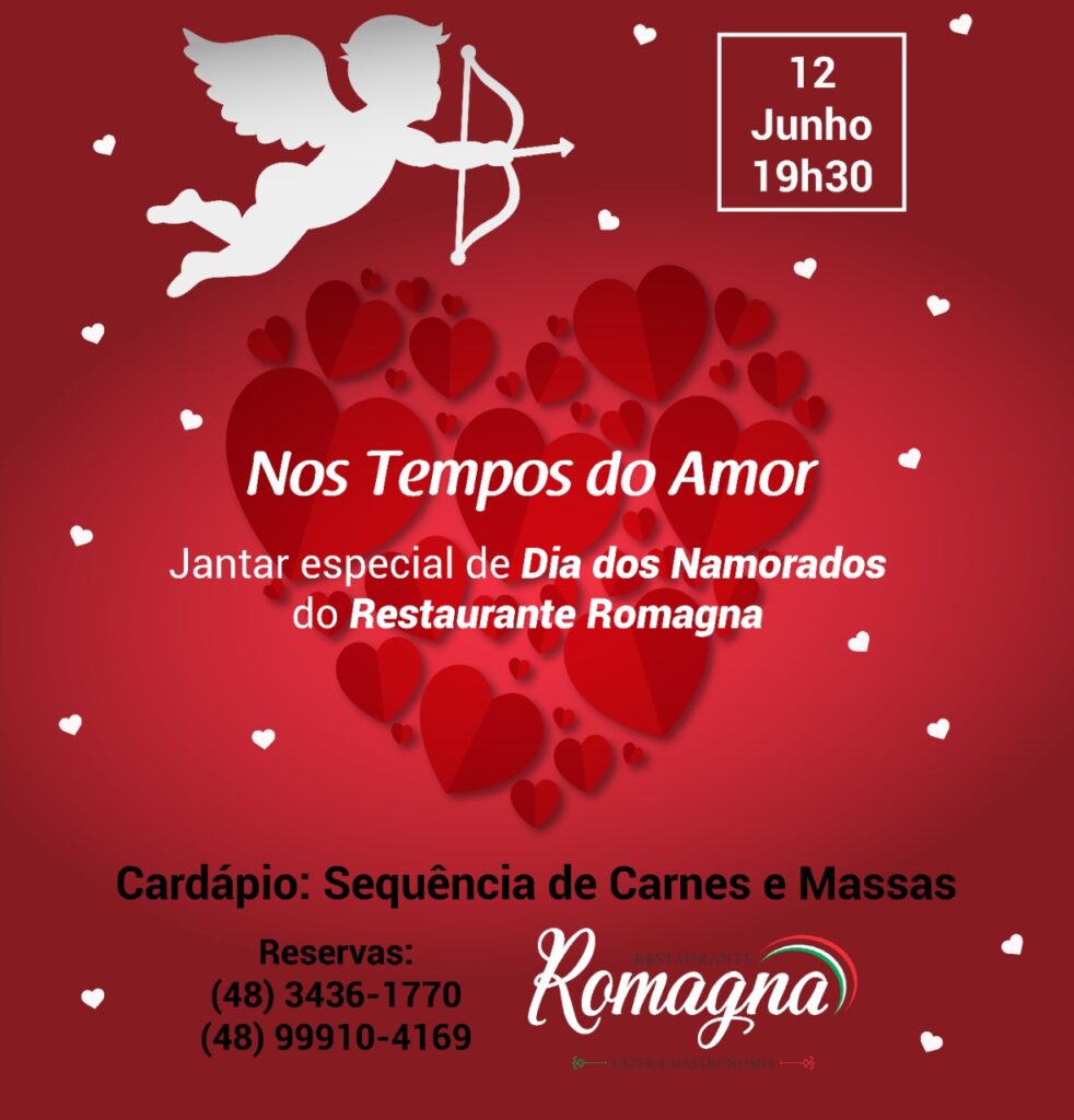 O dia 12 de junho está chegando e o Restaurante Romagna está preparando uma noite especial para os casais apaixonados. Com o tema “Nos Tempos do Amor” você poderá celebrar o romantismo no Jantar de Dia dos Namorados do Restaurante Romagna.