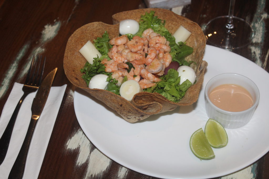 Na Bodega do Zeca as saladas são servidas um cestinho de pão.