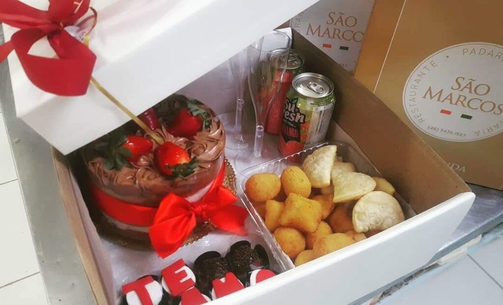 Essa data tão especial para os casais está chegando. E a dúvida é o que fazer para comemorar o Dia dos Namorados? Sabemos que é um momento de estar juntinho da pessoa que ama e para ajudar você a encontrar para presentear o Dia dos Namorados a Padaria e Restaurante São Marcos preparou três opções especiais. Para tornar esse momento único foram preparadas três opções de produtos feitos com muito amor e carinho. São eles: um combo especial, um kit festa ou a cesta especial que variam de R$ 20 a R$ 80 reais.