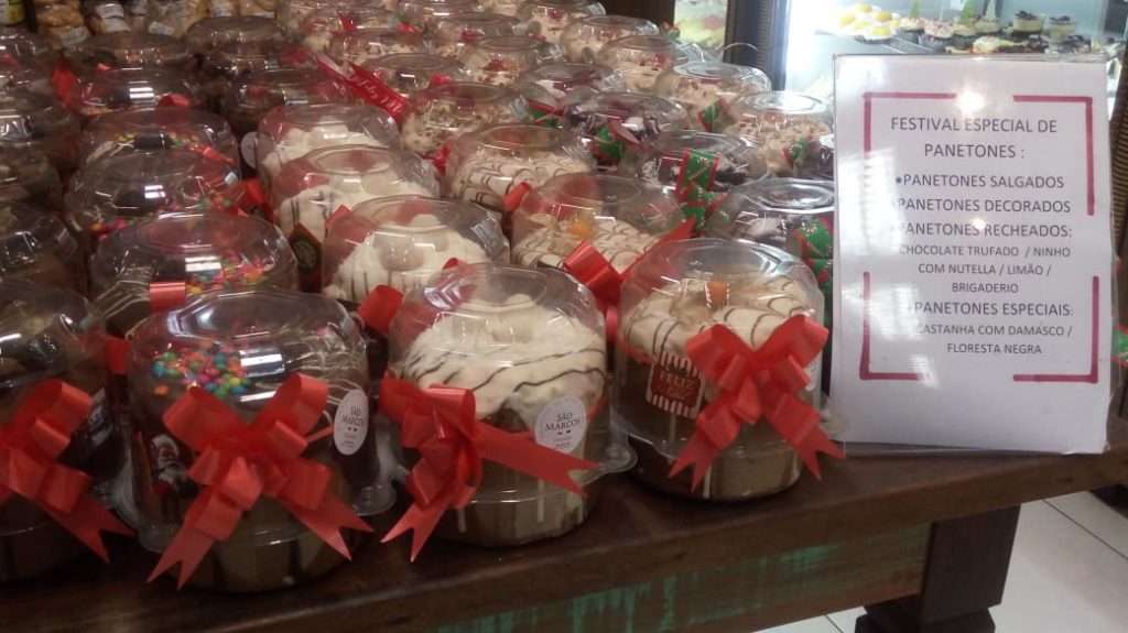Para finalizar um festival de panetones com diversos sabores e texturas, até mesmo em formato de árvore de natal. Entre os sabores estão os tradicionais com frutas e gotas de chocolate, além de sabores como floresta negra, castanha com damasco, chocolate trufado, limão, brigadeiro, pé de moça e Ninho com Nutella. E para quem não gosta de doces, uma opção diferenciada, panetone salgado.