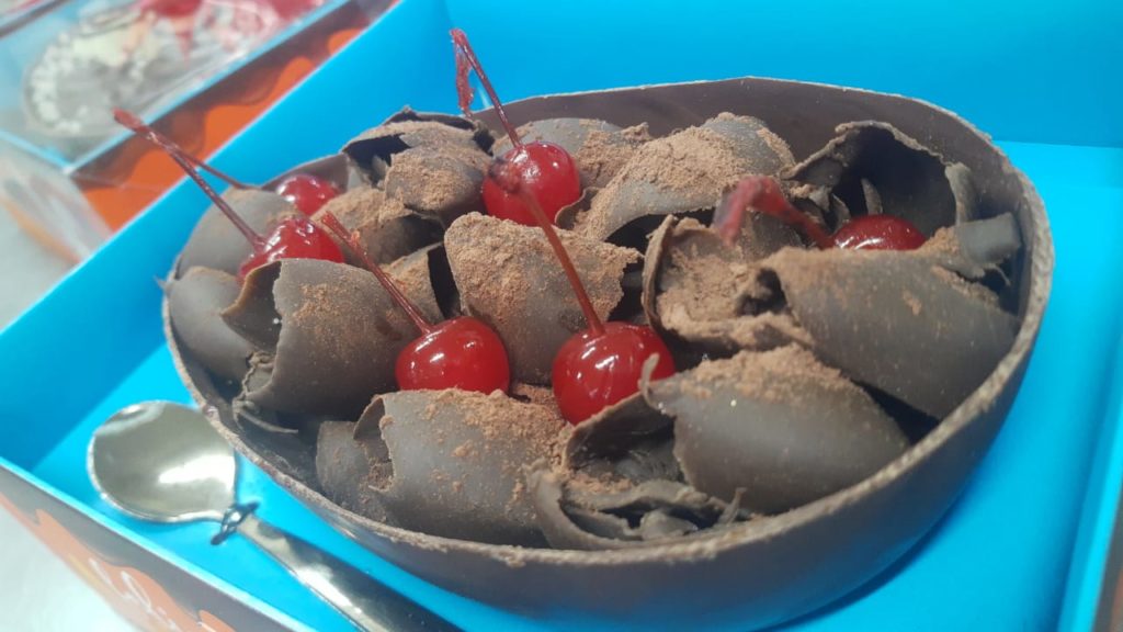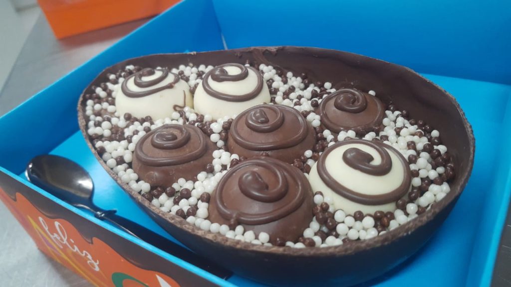 Os ovos de colher variam de preço, 250g por R$ 25,00 e 450g por R$ 35,00. Já os ovos de pascoa tradicional de 200g por R$ 24,00, 400g R$34,00 e 600g por R$ 38,00.