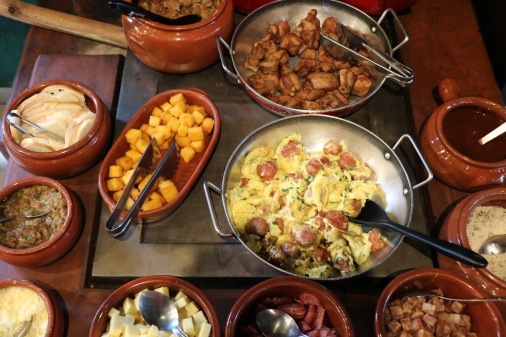 Inspirada em uma cantina italiana, as mesas possuem toalhas quadriculadas em verde e vermelho. Durante os almoços um cardápio fica exposto em um fogão a lenha com diversas entradas e pratos típicos, na mesa é servida uma sequência com massas, polenta, galinha ensopada, fortaia e saladas, além de garçons que servem carnes. Todos os dias o cardápio tem pequenas alterações, deixando tudo ainda mais delicioso!