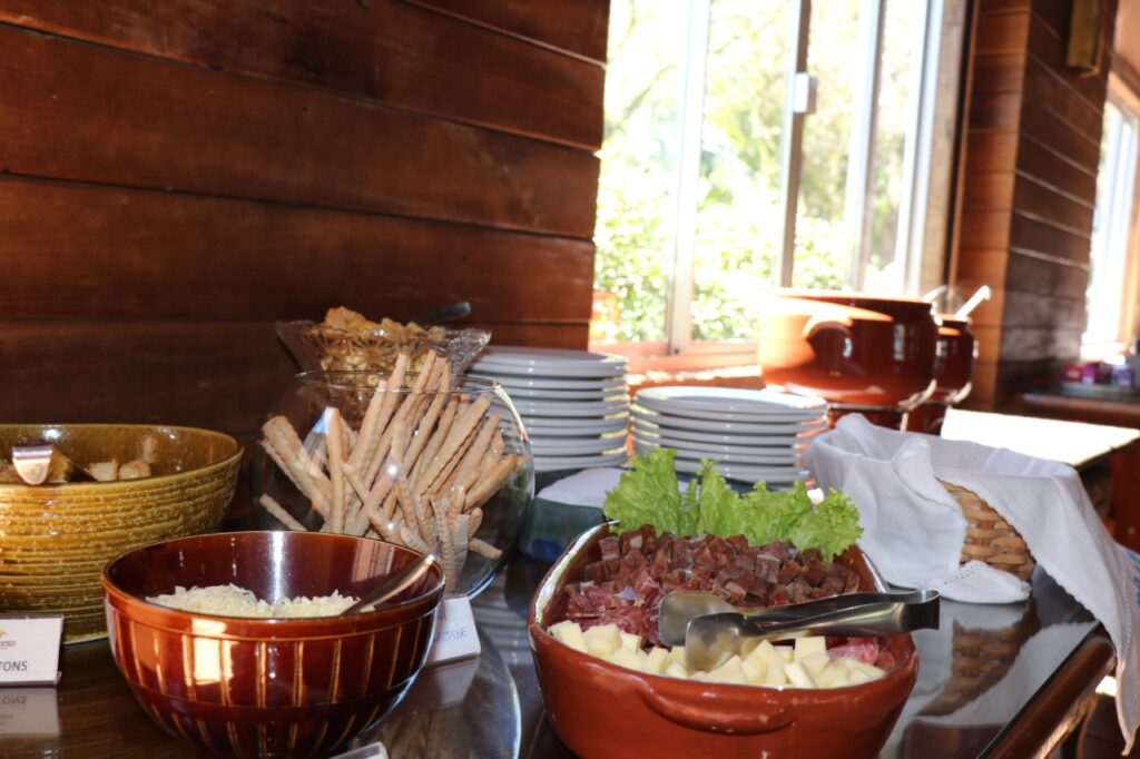 Gastronomia típica italiana, churrasco e sobremesa fazem parte do menu.