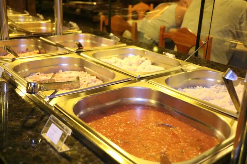 Claro que o destaque fica por conta da tilápia, um peixe tradicional na região e transformado em diversos pratos pelo restaurante. No buffet estão peixe frito, bolinho de peixe, pirão de peixe, ensopada, strognoff e macarrão ao molho de peixe. Além disso conta com outros acompanhamentos como arroz, risoto, frango frito, batata, polenta e aipim frito, saladas e maionese.